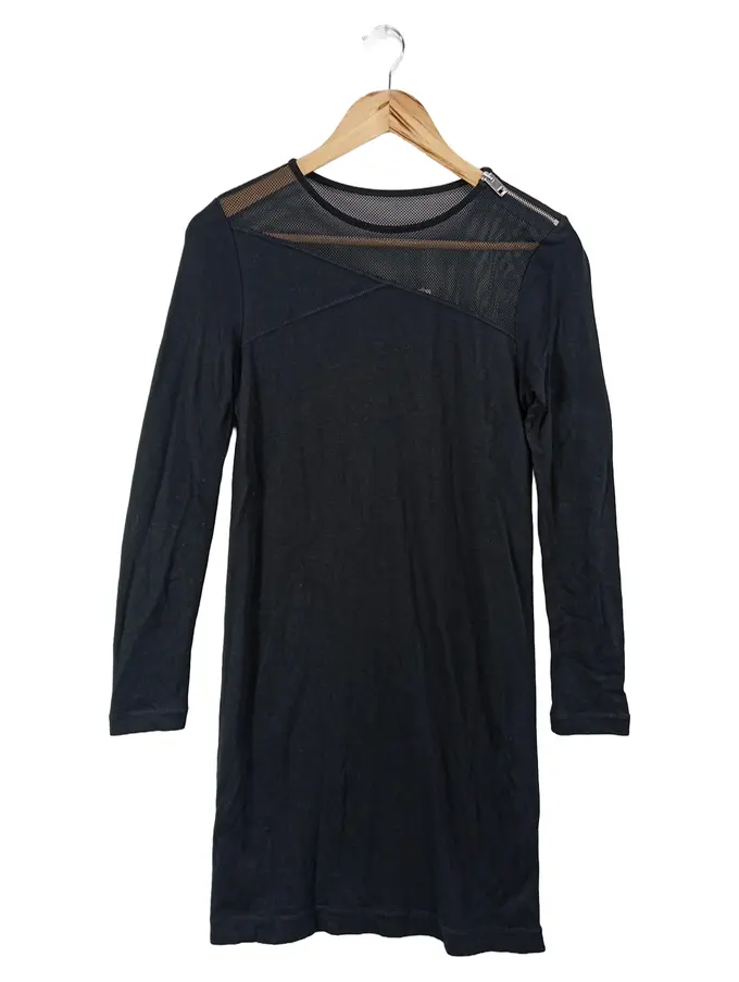 Damen Sommerkleid Gr. 36/S Schwarz Mesh Reißverschluss Midikleid