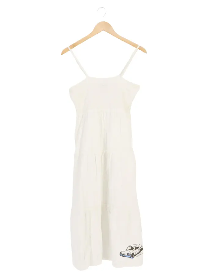 Damen Sommerkleid Gr. 40/L Weiß Casual Bohemian Midikleid Baumwolle