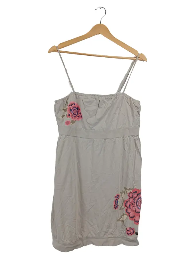 Damen Sommerkleid Gr. XL 42 Beige Blumenprint Baumwolle Casual Träger