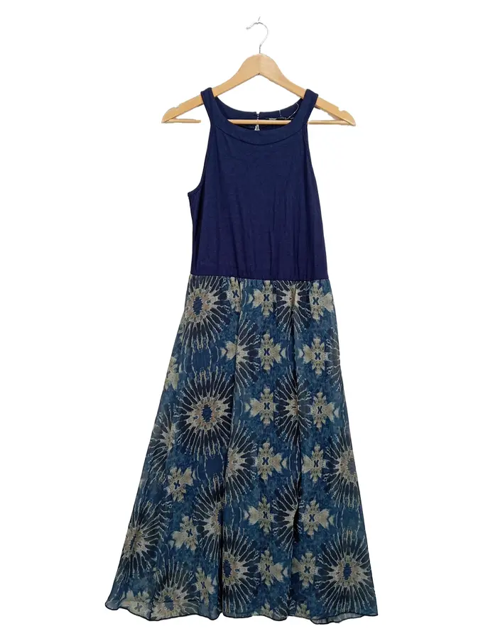 Damen Sommerkleid Maxikleid Gr. 38 Blau Boho Muster