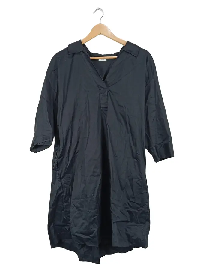 Damen Sommerkleid Schwarz Gr. M Baumwolle V-Ausschnitt Casual