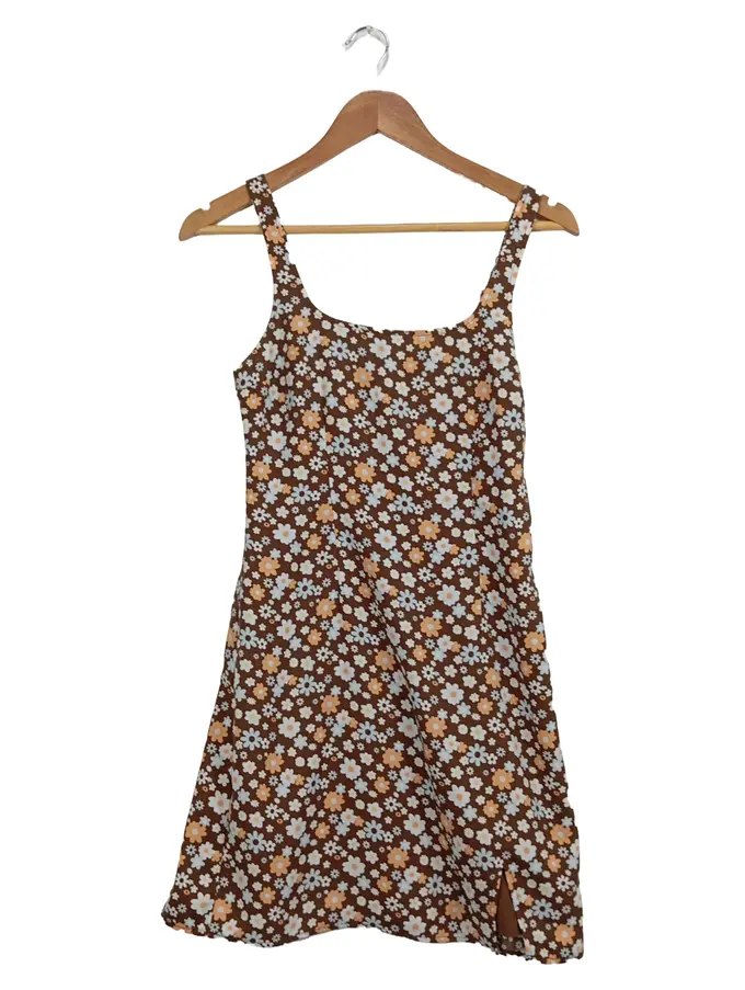 Damen Sommerkleid XS Braun Blumenmuster Casual