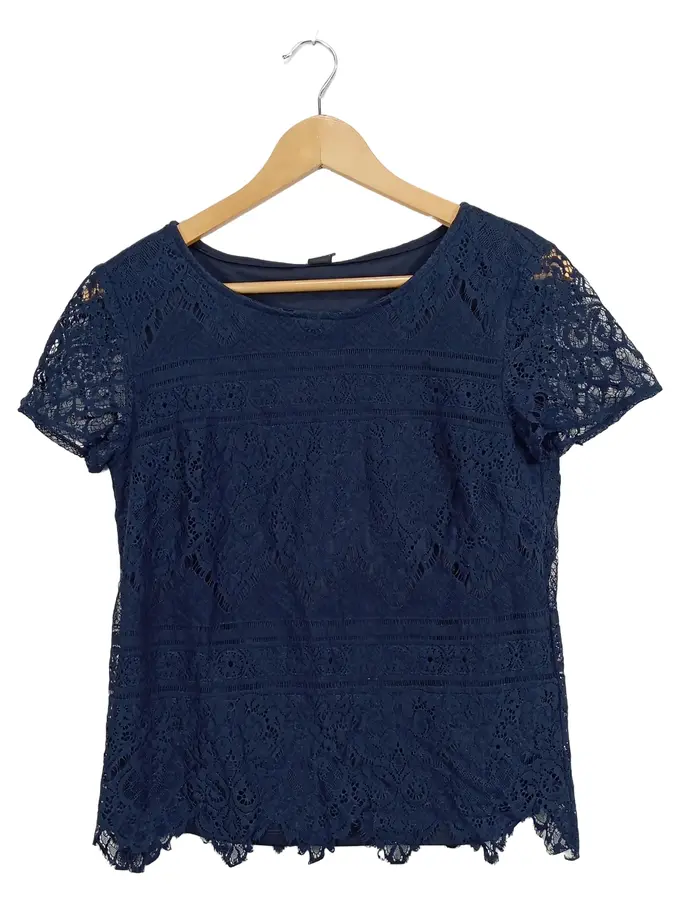 Damen Spitzenbluse Gr. 36 S Blau Elegant Kurzarm