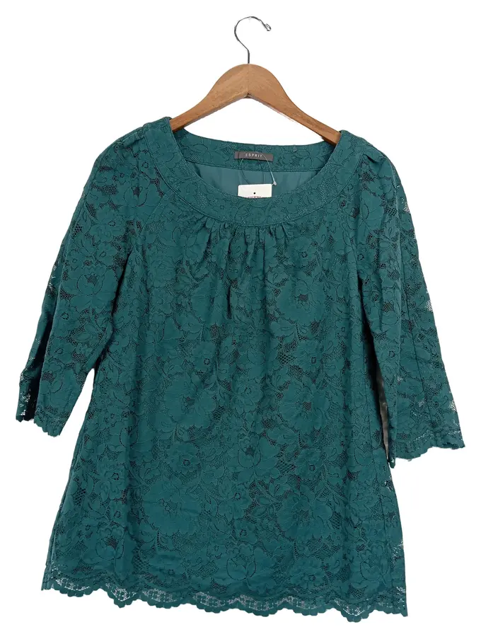 Damen Spitzenbluse Gr. 36/S Grün Feminin Elegant