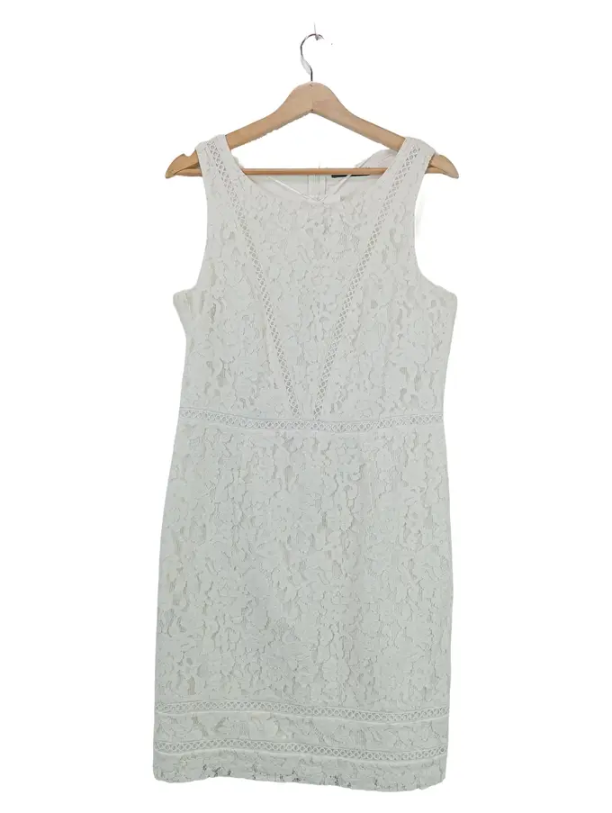 Damen Spitzenkleid Ärmellos Weiß Gr. 40 Festlich Elegant