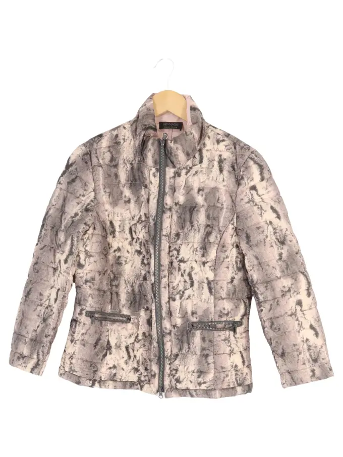 Damen Steppjacke Gr. 38/M Beige Tierdruck Casual