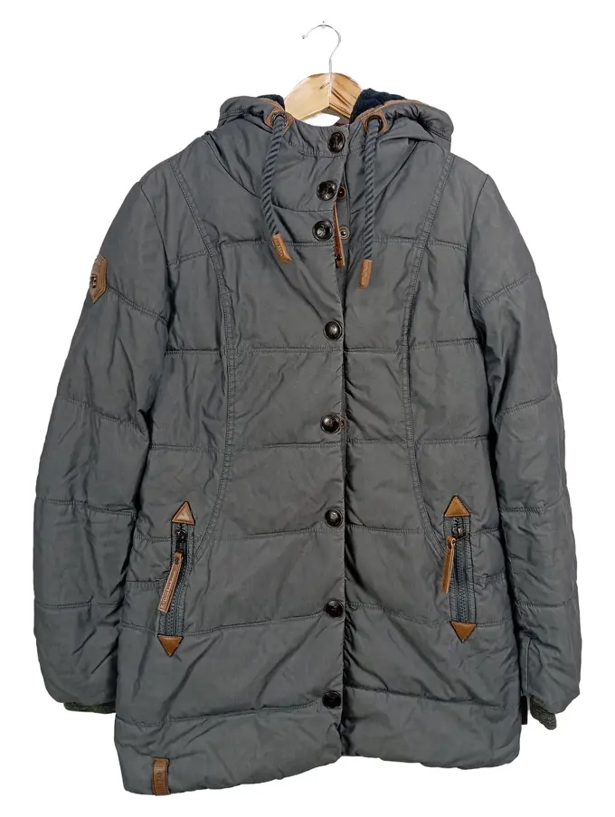 Damen Steppjacke Gr. 38/M Grau Casual Winterjacke Kapuze