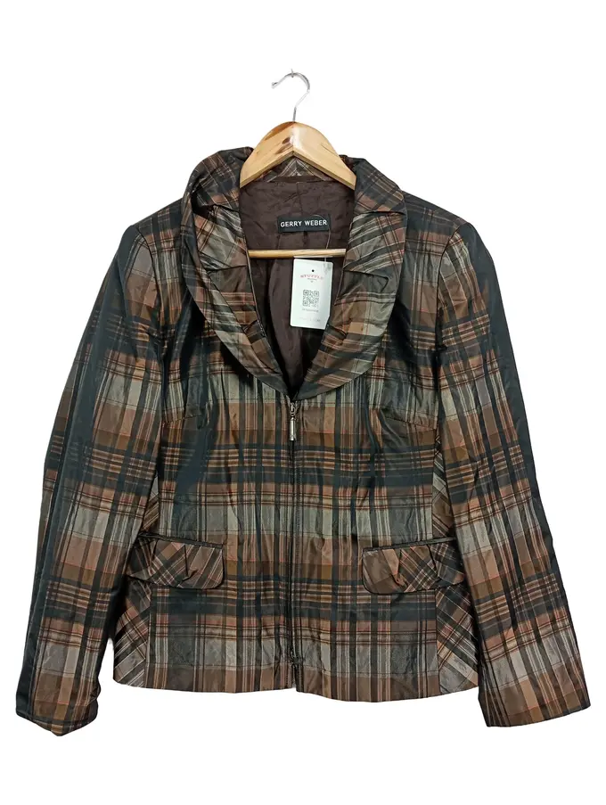 Damen Steppjacke Gr. 40/M Braun Kariert Klassisch Elegant