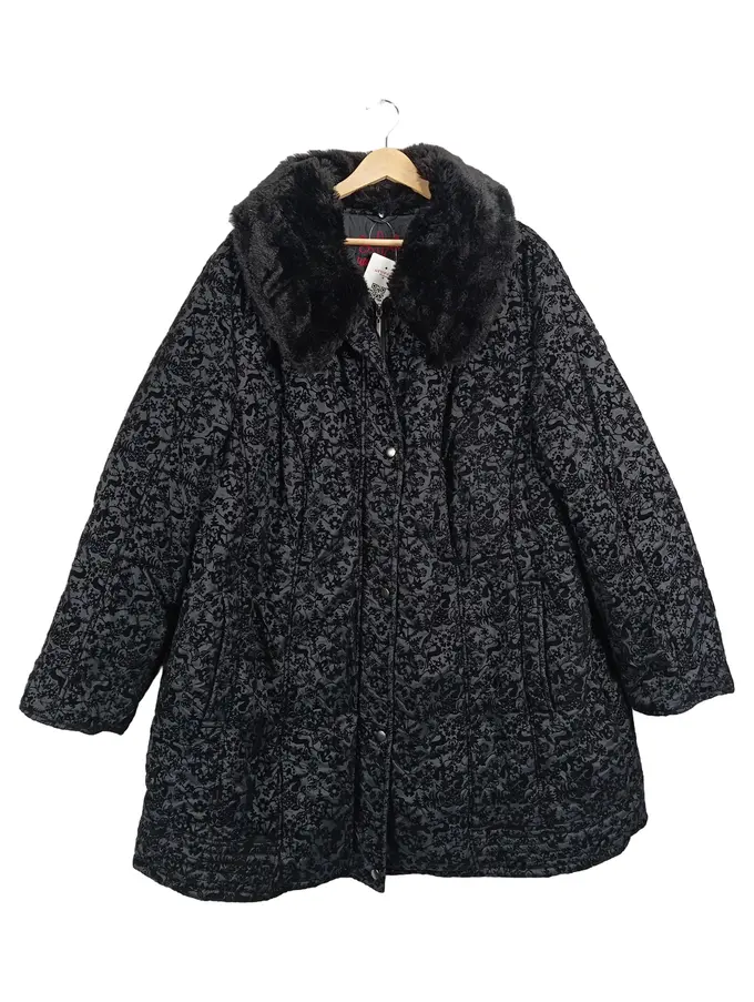 Damen Steppjacke Gr. 54/3XL Schwarz Pelzkragen Floral