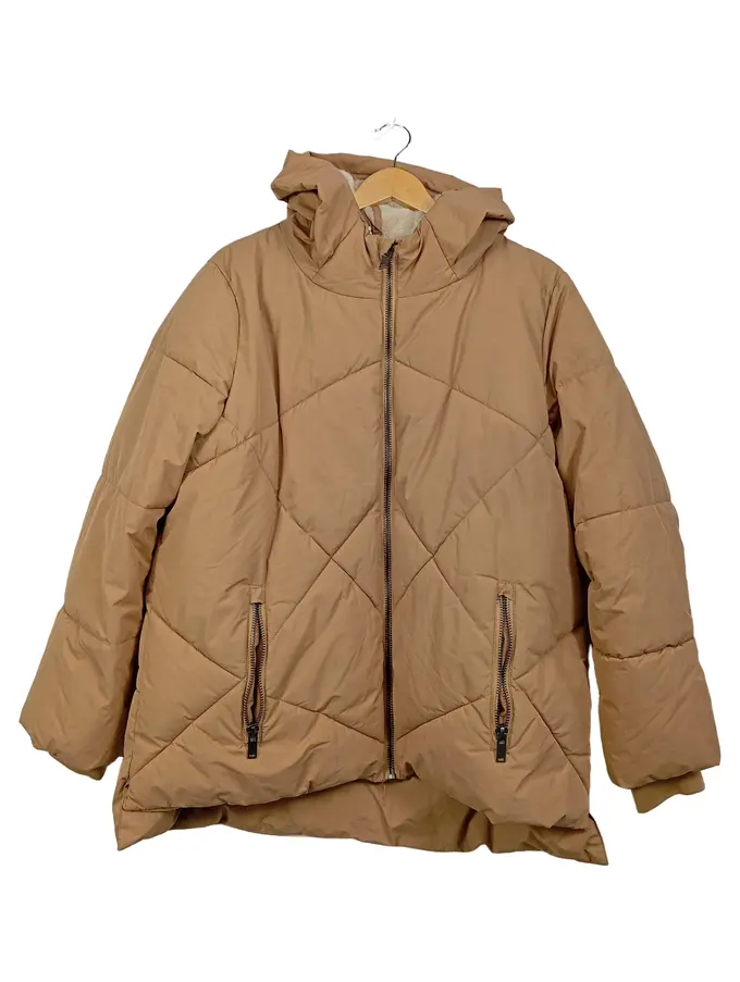 Damen Steppjacke Kapuze Beige Gr. 44 Langarm Casual Alltag Polyester