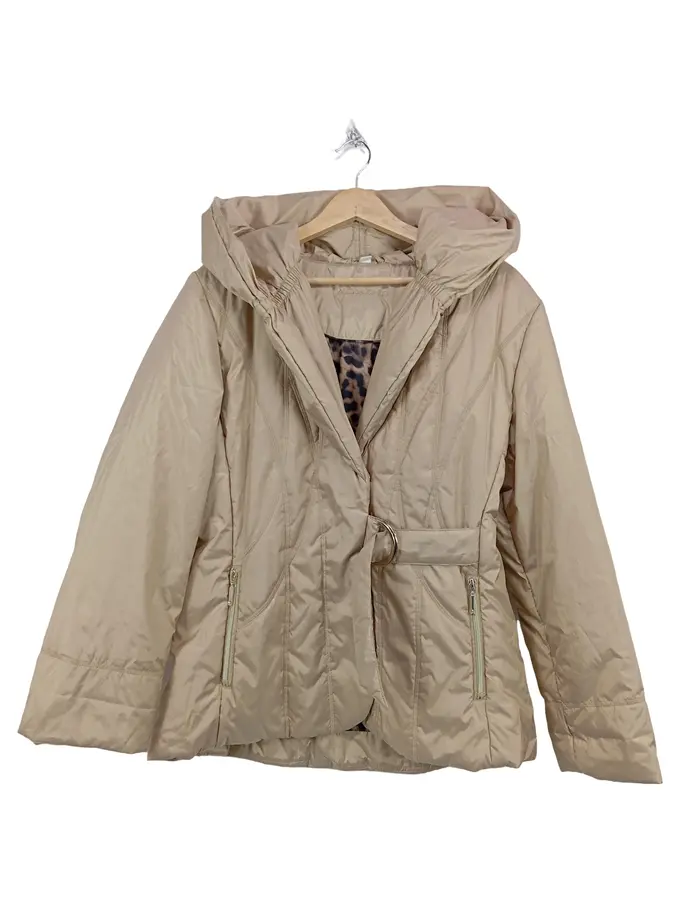 Damen Steppjacke mit Gürtel & Kapuze Gr. 40/L Beige Casual
