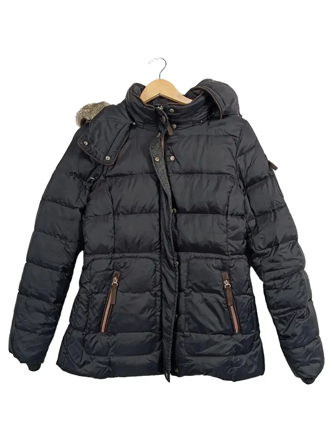 Damen Steppjacke Winterjacke Kapuze Fellbesatz Blau Gr. S