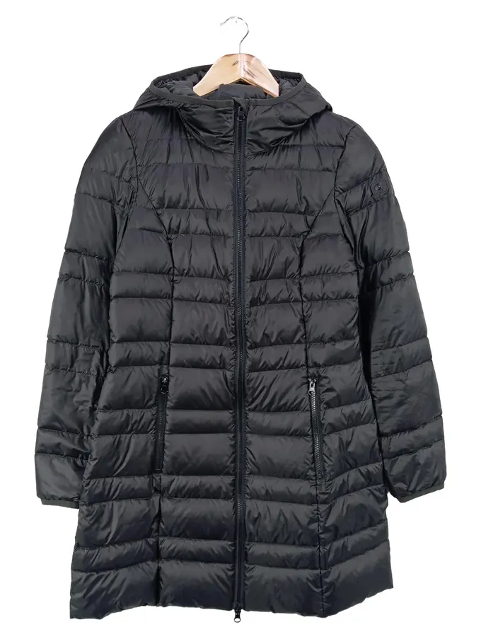 Damen Steppmantel Gr. 36/S Schwarz Kapuze Daunenjacke
