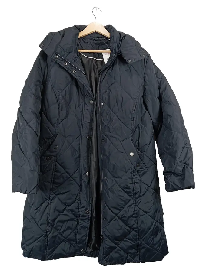 Damen Steppmantel Gr. 42/XL Schwarz Kapuze Winterjacke Lang