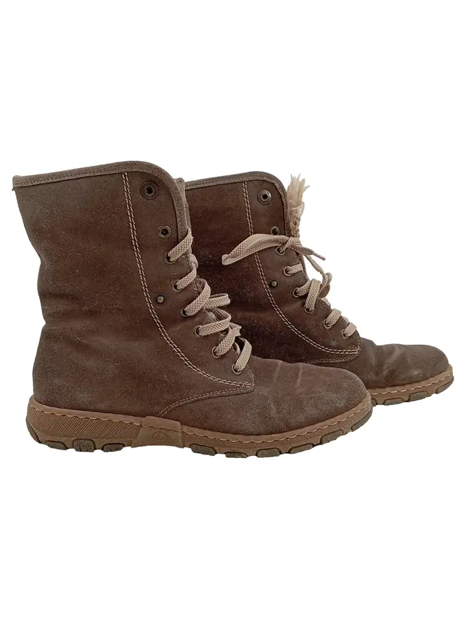 Damen Stiefel Wildleder Braun Schnürung Reißverschluss Gr. 39