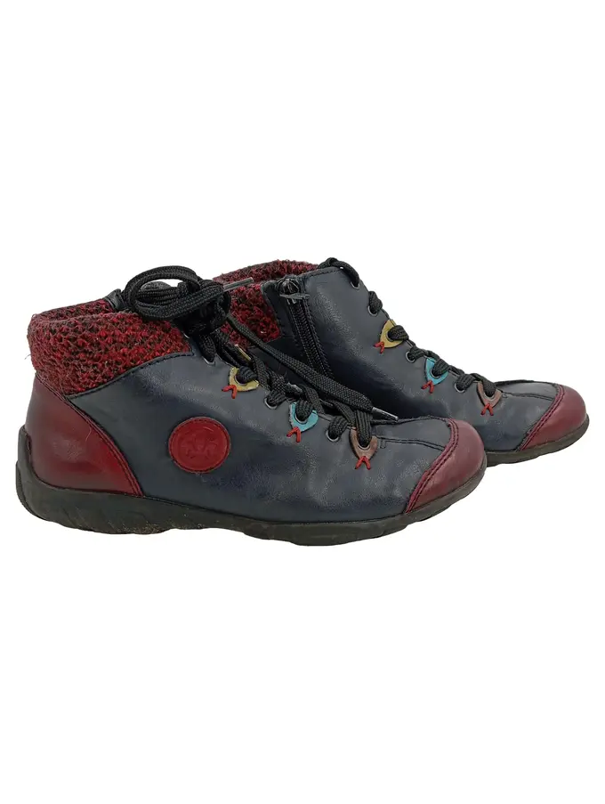 Damen Stiefelette Gr. 36 Blau Rot Leder Schnürung Reißverschluss