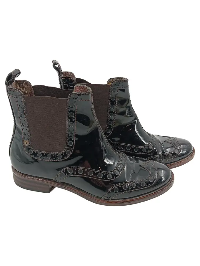 Damen Stiefelette Gr. 38 Schwarz Lack Brogue Chelsea Boots