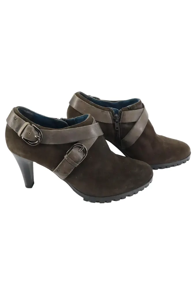 Damen Stiefelette Gr. 39 Braun Elegant Wildleder Schnallen Reißverschluss 9cm Absatz