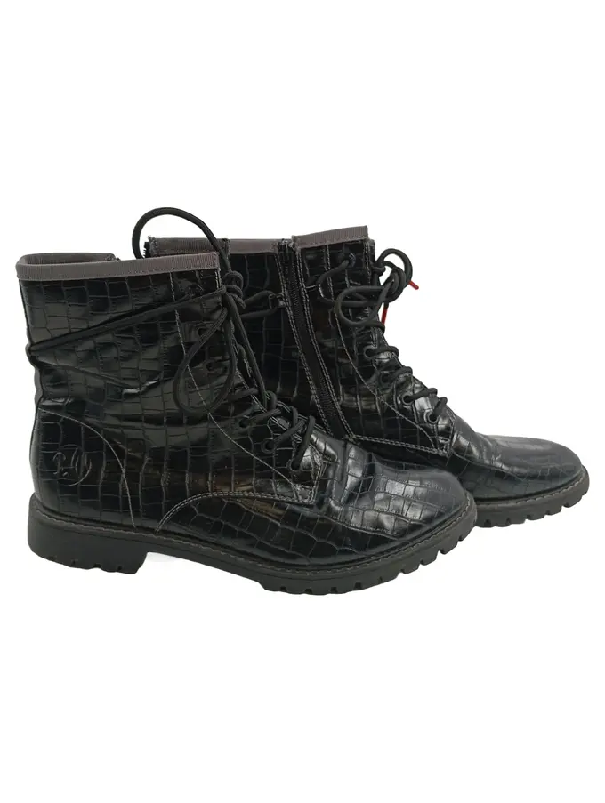 Damen Stiefelette Gr. 42 Schwarz Krokoprägung Schnürstiefel