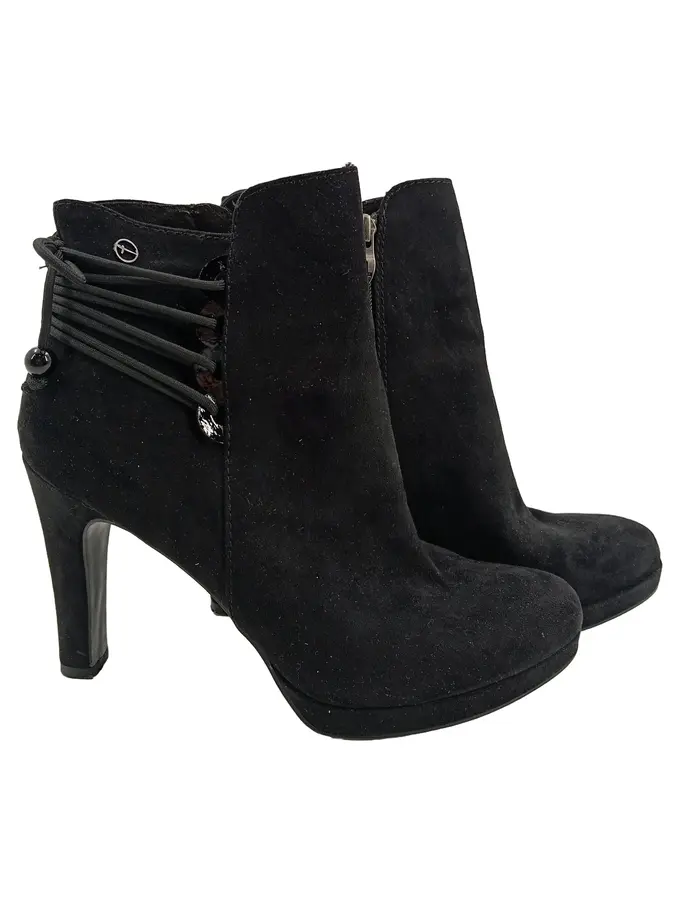 Damen Stiefeletten Gr. 38 Schwarz Elegant Reißverschluss Absatzschuhe