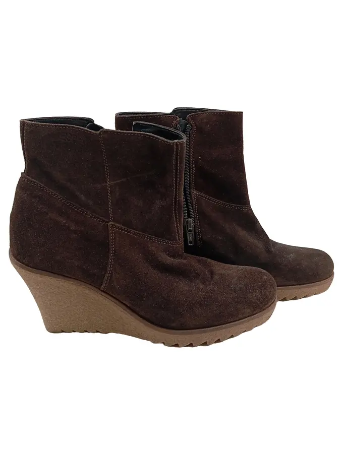 Damen Stiefeletten Keilabsatz Wildleder Braun Gr. 39 Ankle Boots