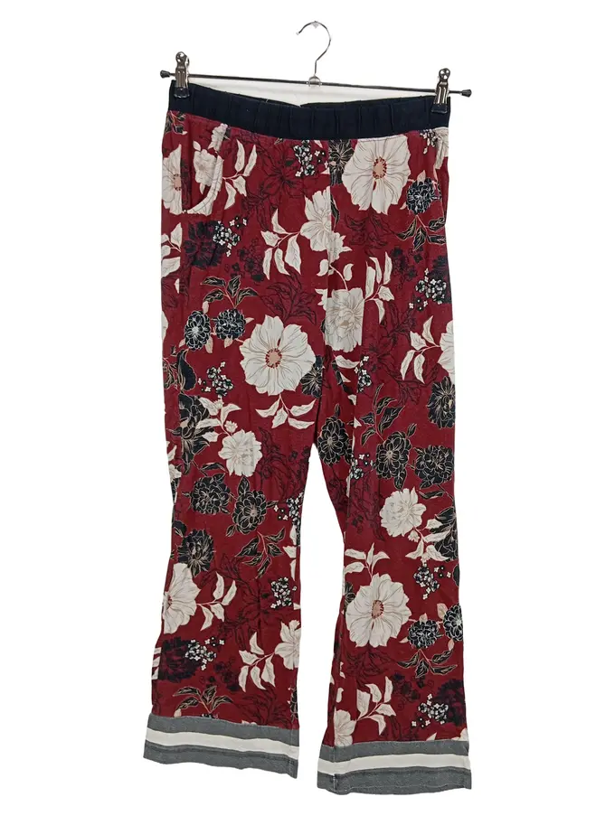 Damen Stoffhose Blumenmuster Rot Gr. L Baumwolle Casual
