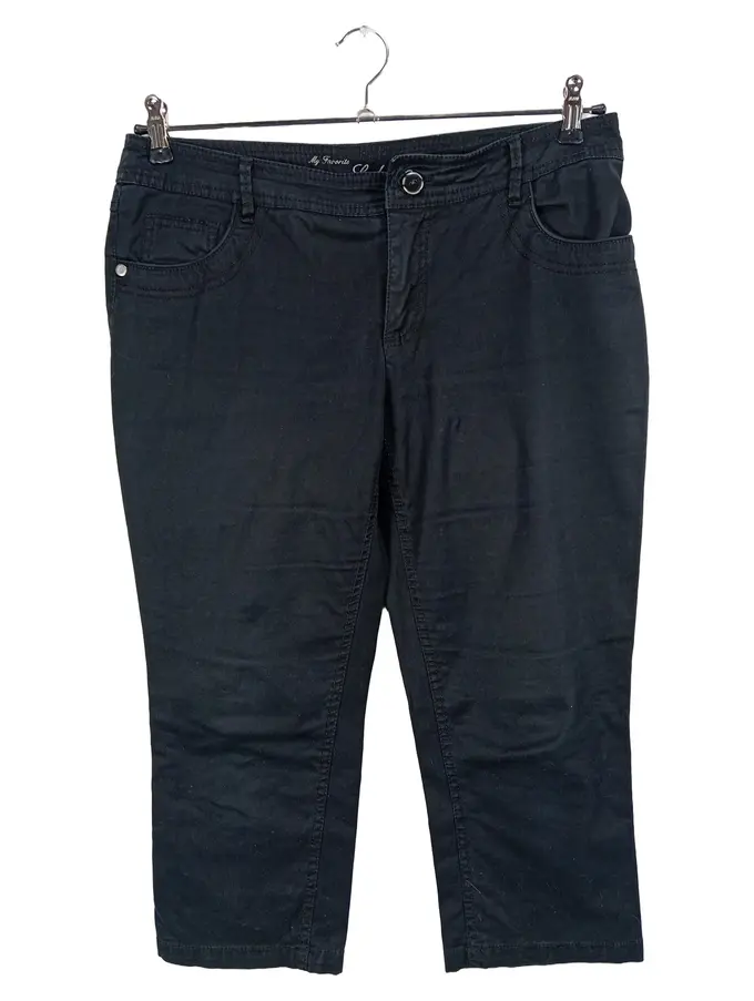 Damen Stoffhose Capri 3/4 Hose Schwarz Größe 40 L Baumwolle