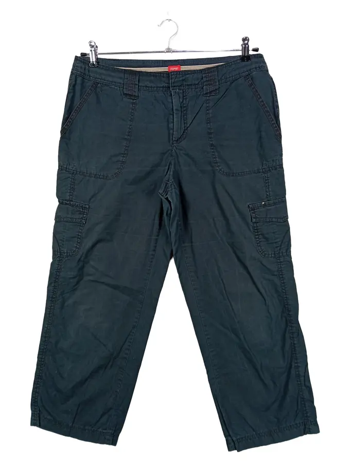 Damen Stoffhose Capri Cargo Gr. 42 XL Schwarz Casual Praktisch