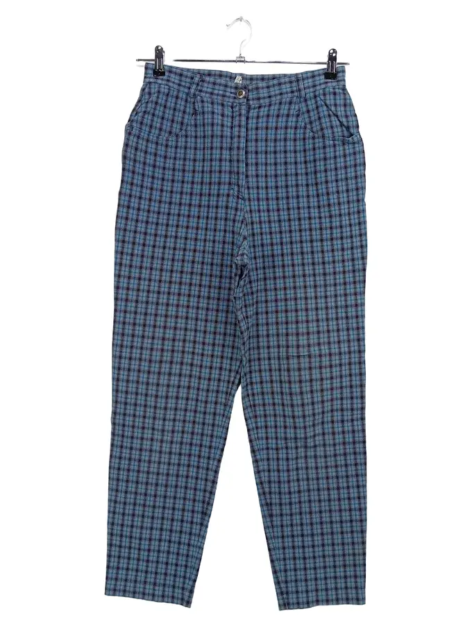 Damen Stoffhose Gr. 40 L Blau Kariert Casual Freizeithose