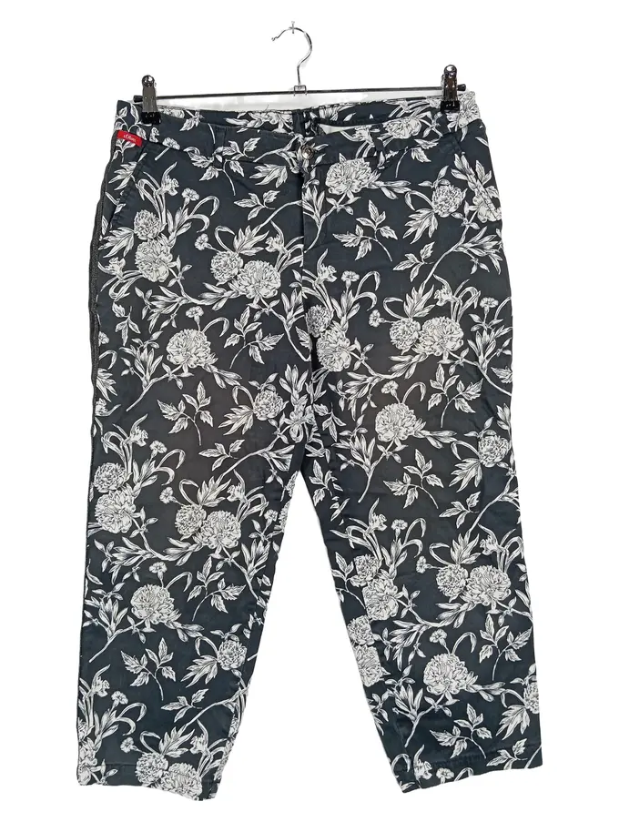 Damen Stoffhose Gr. 46 Mehrfarbig Blumenmuster