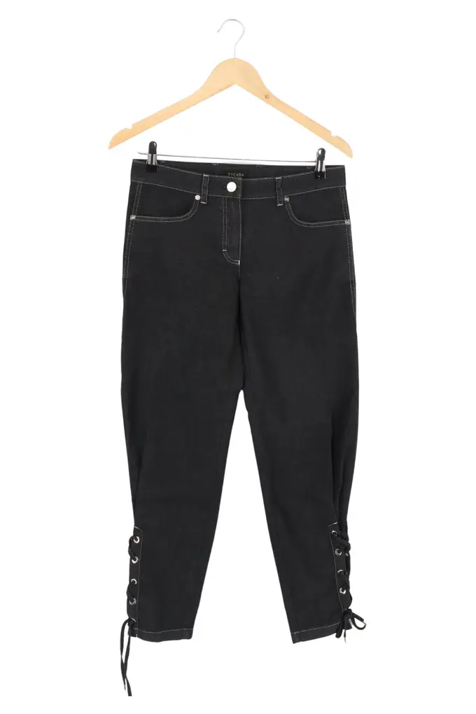 Damen Stoffhose Schwarz Baumwolle Gr. M Elegant Casual Lacing
