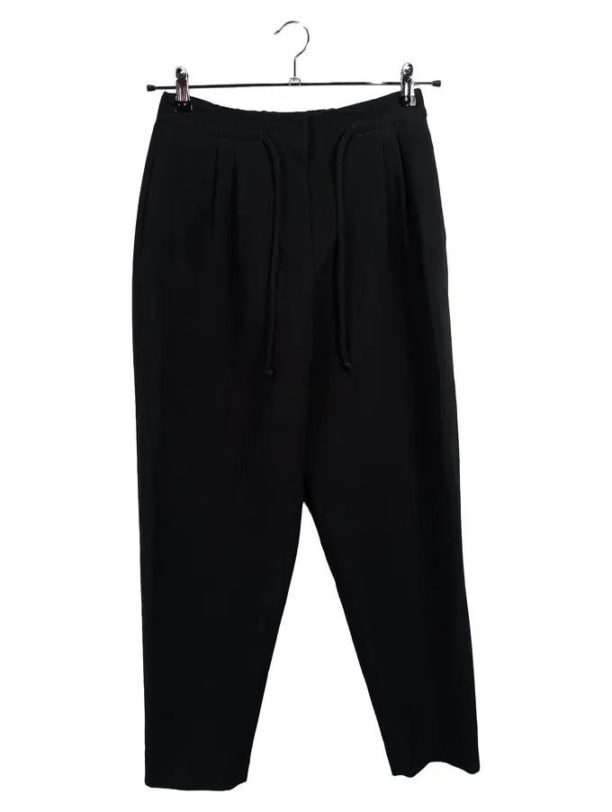 Damen Stoffhose Schwarz Gr. 36 Bundfalte Kordelzug