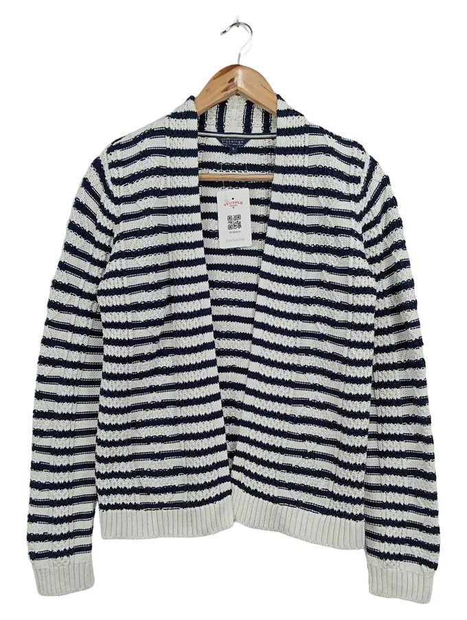 Damen Strickjacke 36/S Blau Weiß Gestreift Baumwolle Klassisch