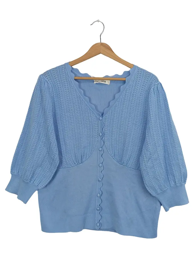 Damen Strickjacke Blau 44/XXL Elegant Vintage Klassisch Cardigan