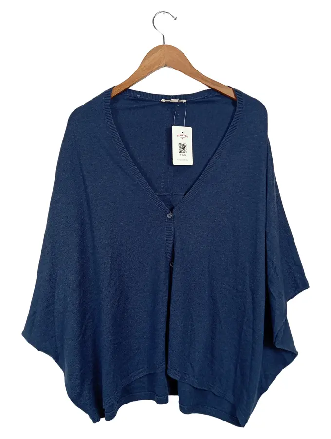 Damen Strickjacke Blau Gr. 38/M Casual V-Ausschnitt Knopfleiste