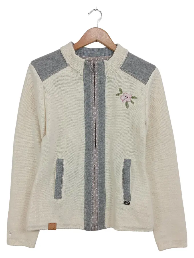 Damen Strickjacke Blumenstickerei Gr. 36/S Weiß