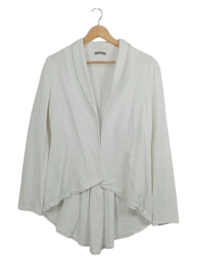 Damen Strickjacke Cardigan Baumwolle Asymmetrisch Weiß Gr. L