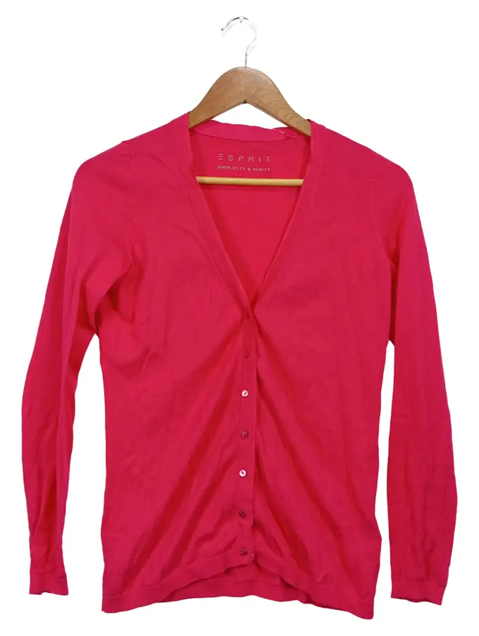 Damen Strickjacke Cardigan Gr. 34/XS Pink Basic Langarm