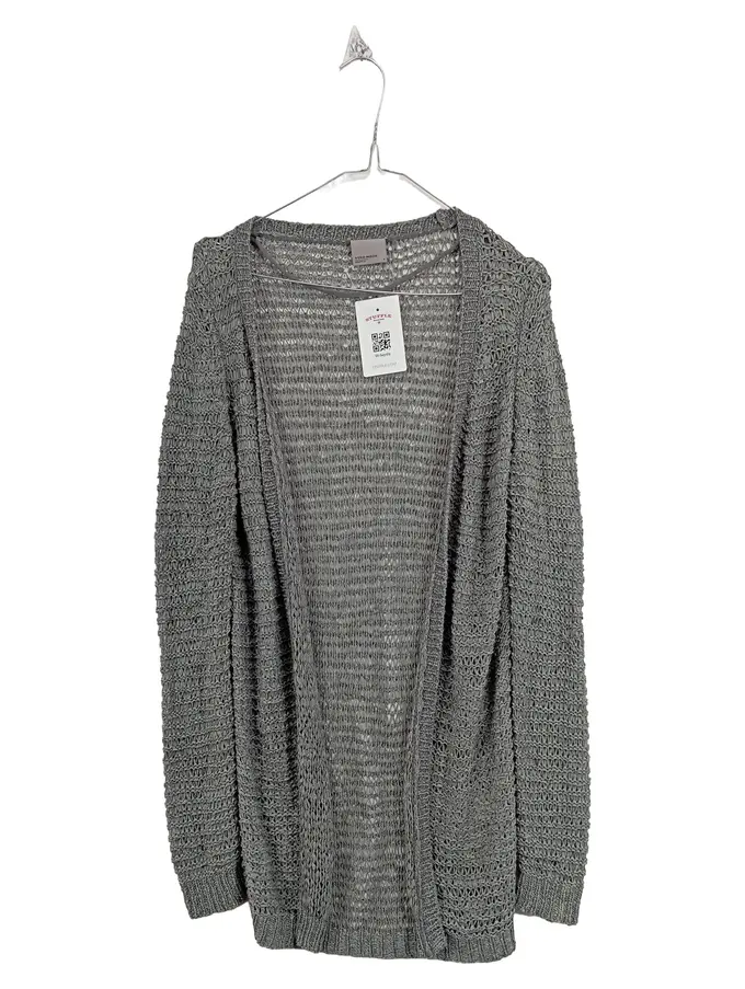 Damen Strickjacke Cardigan Gr. S Grau Lochmuster Casual