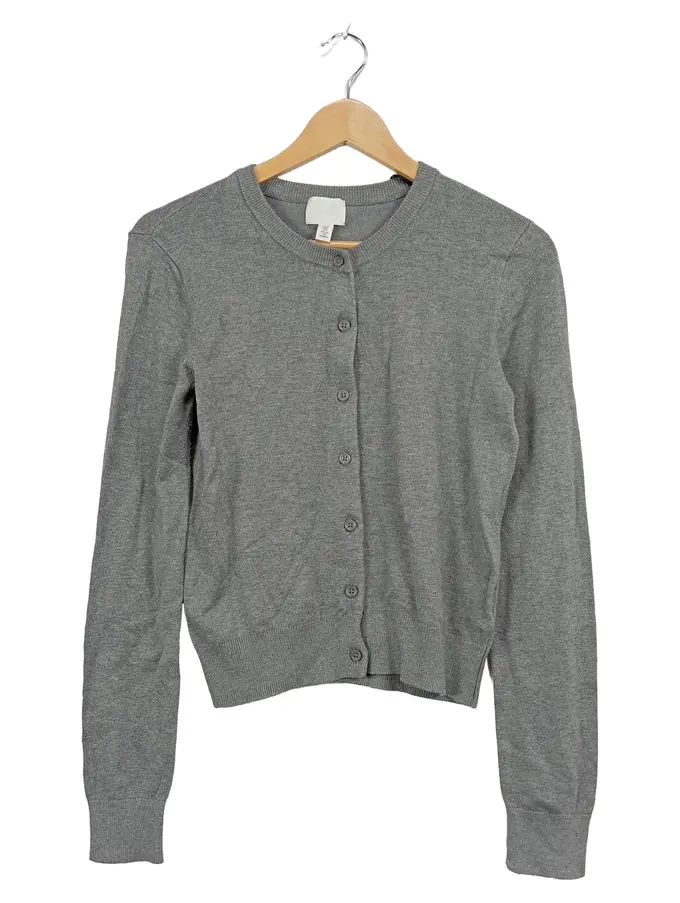 Damen Strickjacke Cardigan Grau Gr. S 36 Basic Langarm Melange Baumwolle