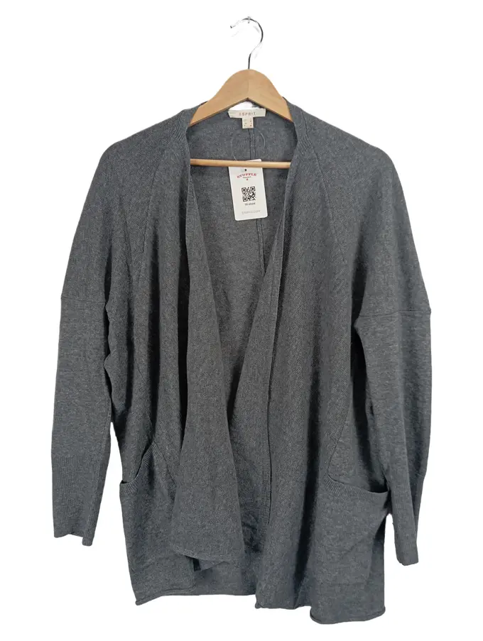 Damen Strickjacke Cardigan Grau Melange Gr. L Baumwolle Casual