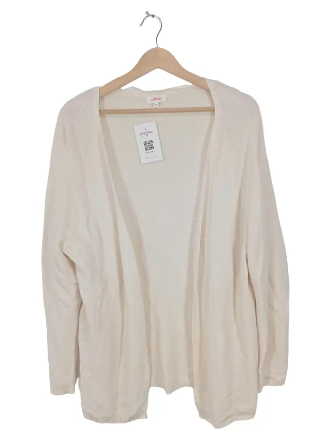 Damen Strickjacke Cardigan Offen Beige Gr. 44 Viskose