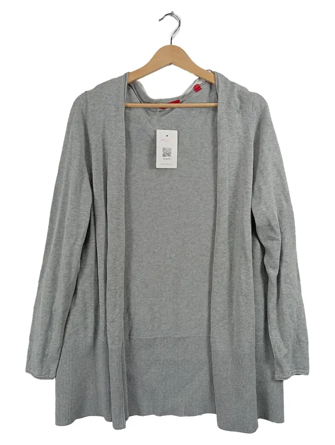 Damen Strickjacke Cardigan offen Gr. 48 Grau Viskose