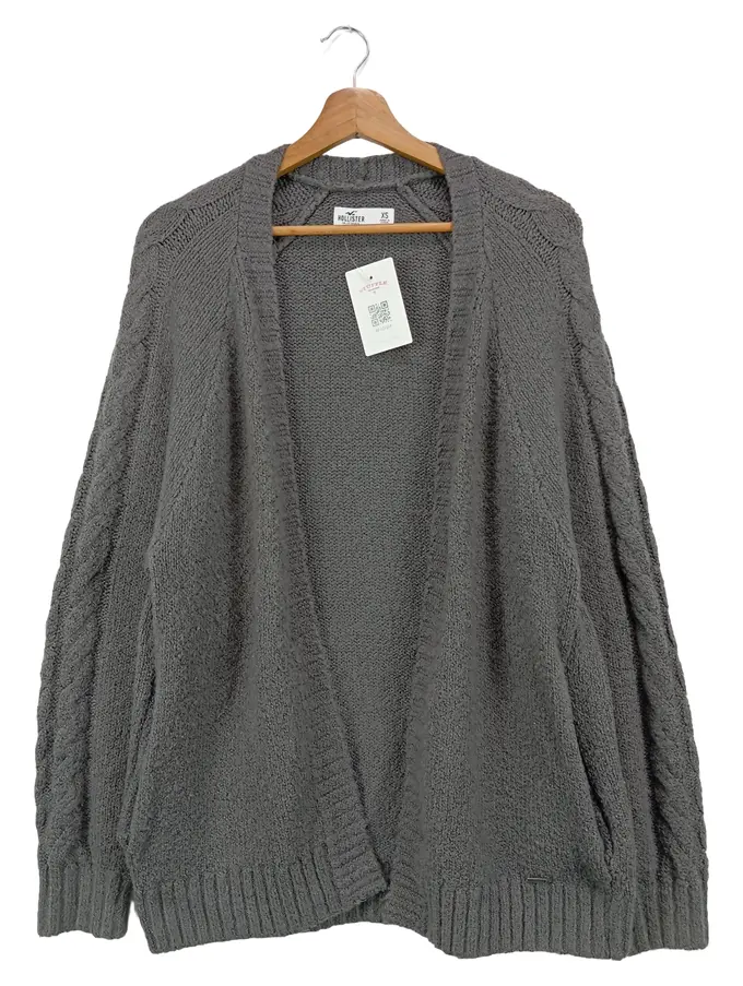 Damen Strickjacke Cardigan Zopfstrick Grau Gr. 34/XS