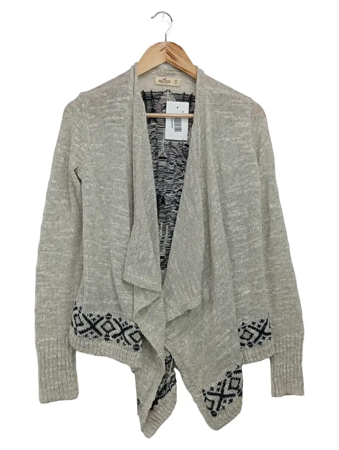 Damen Strickjacke Gr. 34/XS Grau Bohemian Tiermotiv