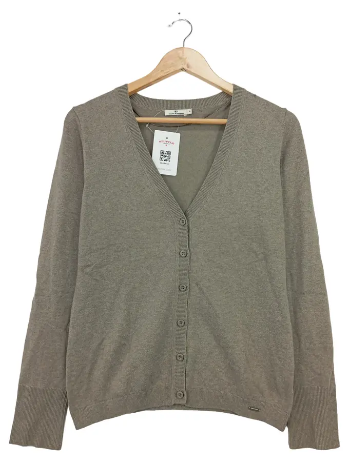 Damen Strickjacke Gr. 36/S Grau Klassisch Baumwolle Elegant