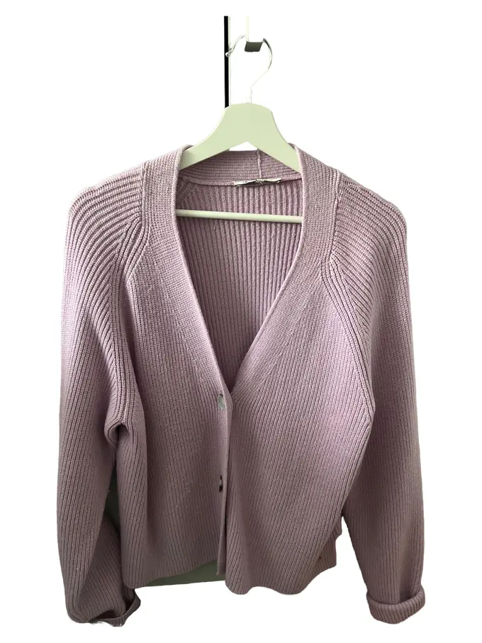 Damen Strickjacke Gr. 36/S Lila Rippstrick Cardigan