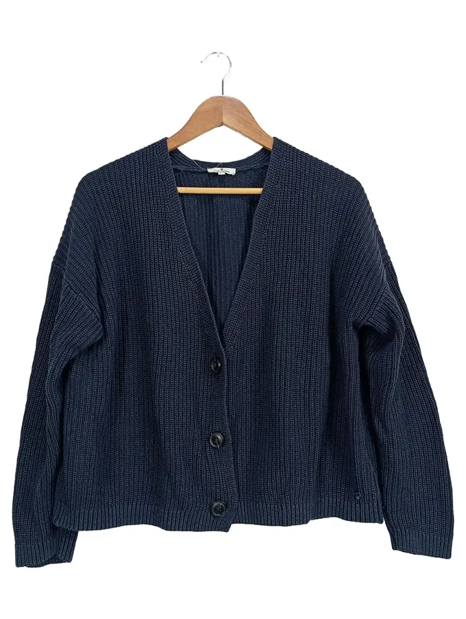 Damen Strickjacke Gr. 38/M Blau Casual Rippstrick