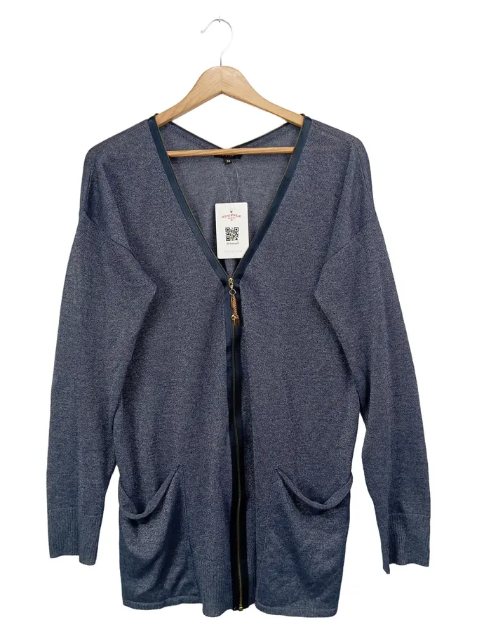 Damen Strickjacke Gr. 38/M Blau Elegant Viskose