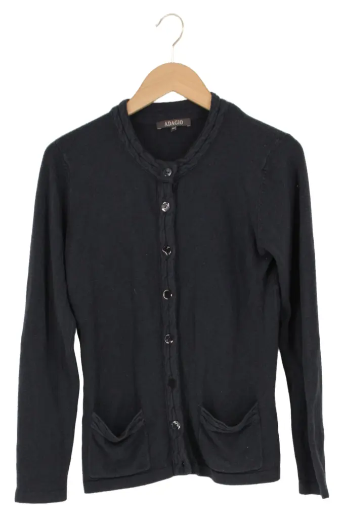Damen Strickjacke Gr. 38 Schwarz Klassisch Cardigan